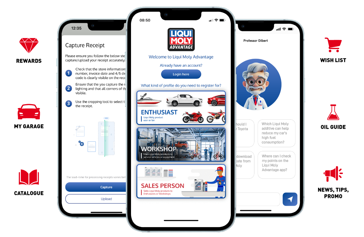 LIQUI MOLY Advantage: All in one tool to add value to our partners and say thank you. Track your rewards, redeem your points, easy to use oil guide, scan products for additional information, fill your shopping list and get all the latest news.